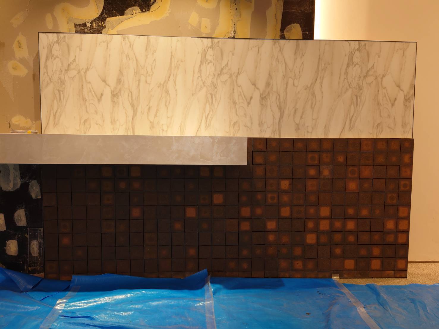 この写真は上部がデコリエで、下部がスマートタイル横貼りです。